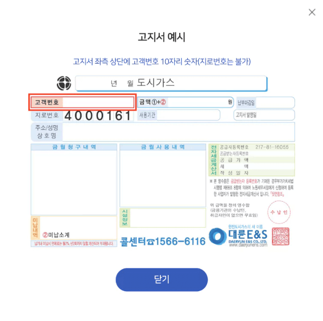 ✅참고로 고객식별번호란? 예시사진처럼 고지서의 적혀 있는 ‘고객번호’를 말합니다.