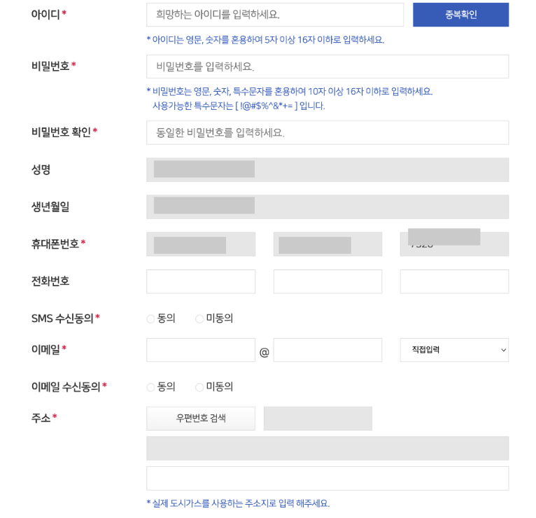 현재 사용하고 있는 도시가스사를 선택해 주시고 고객식별번호를 입력하시면 됩니다.