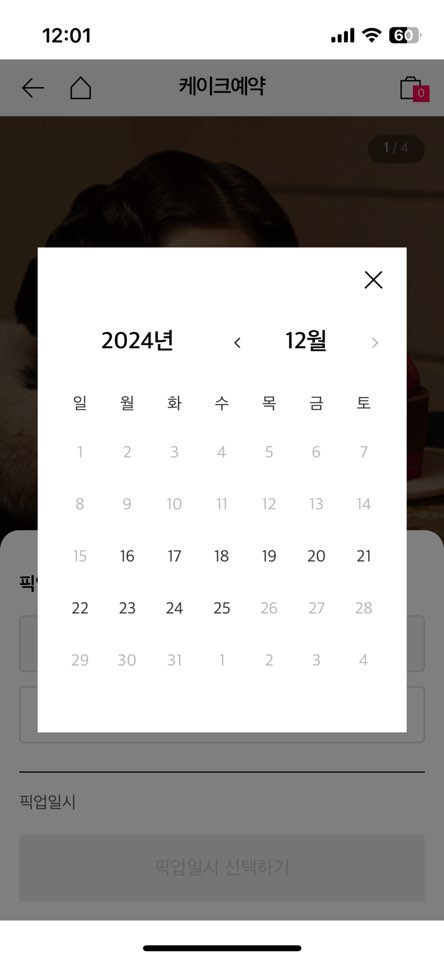1. 목록에서 케익 선택 ➡️ 예약 매장 선택 ➡️ 픽업 날짜 선택 ➡️
